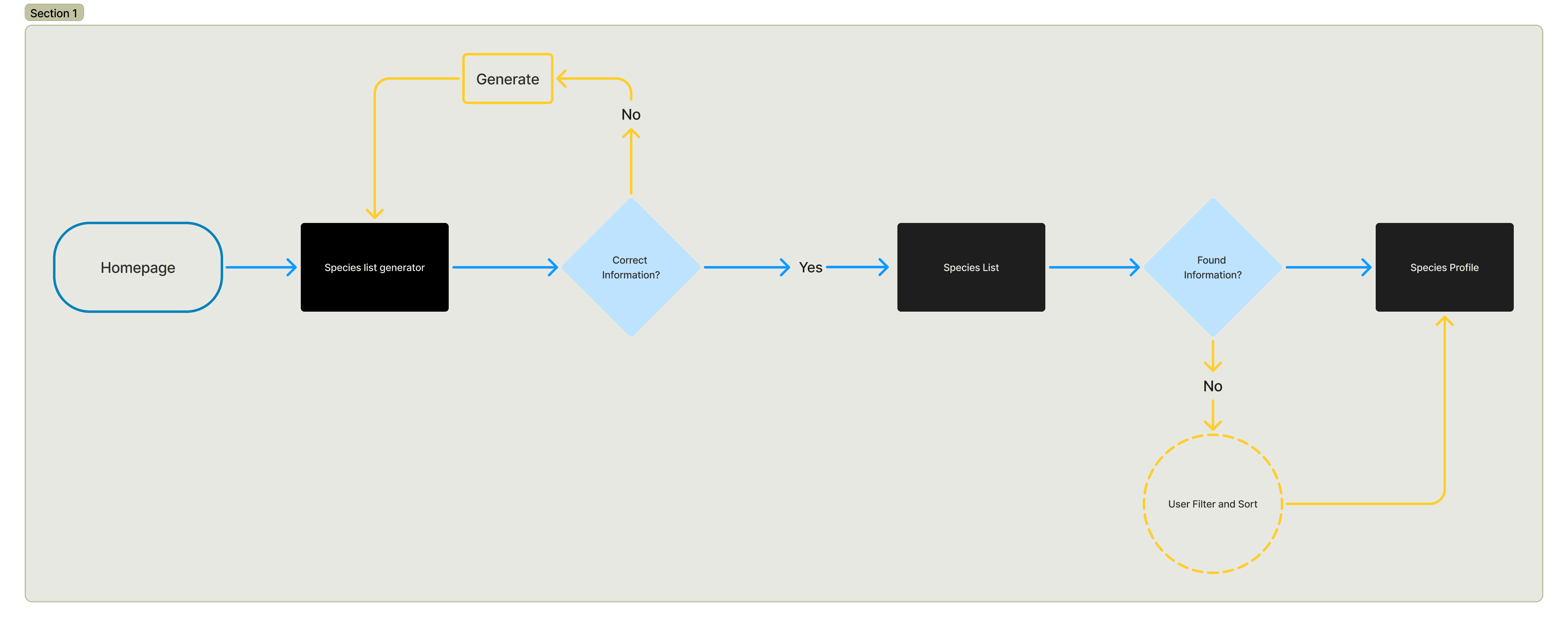 Card-sorted layout combined with a facted filtered system provide users with a more structured and accessible way to explore species. Each species is presented as an individual card with a summary of the species name, category, and status, while filters on the left allow users to refine their search based on different criteria.